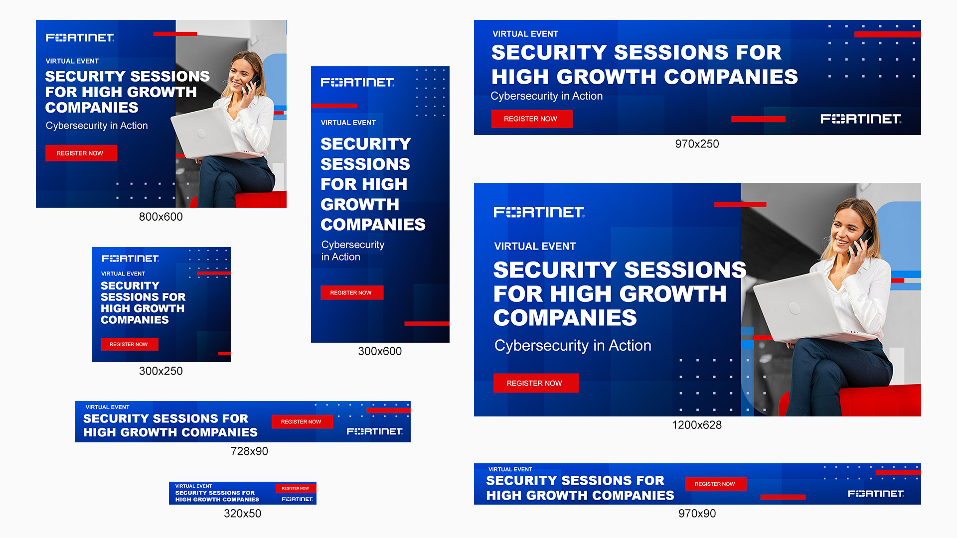 I was tasked with designing 8 sized ad units for Fortinet a global Leader of Cybersecurity Solutions and Services.