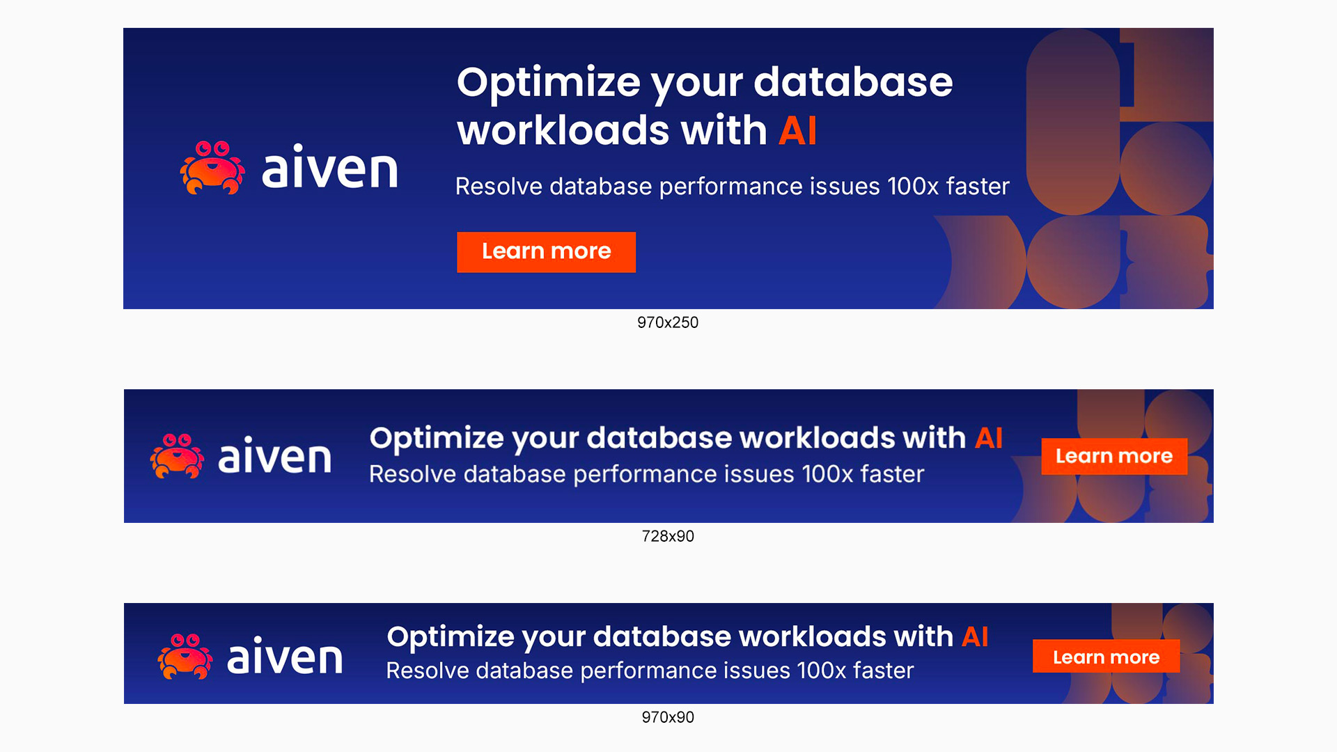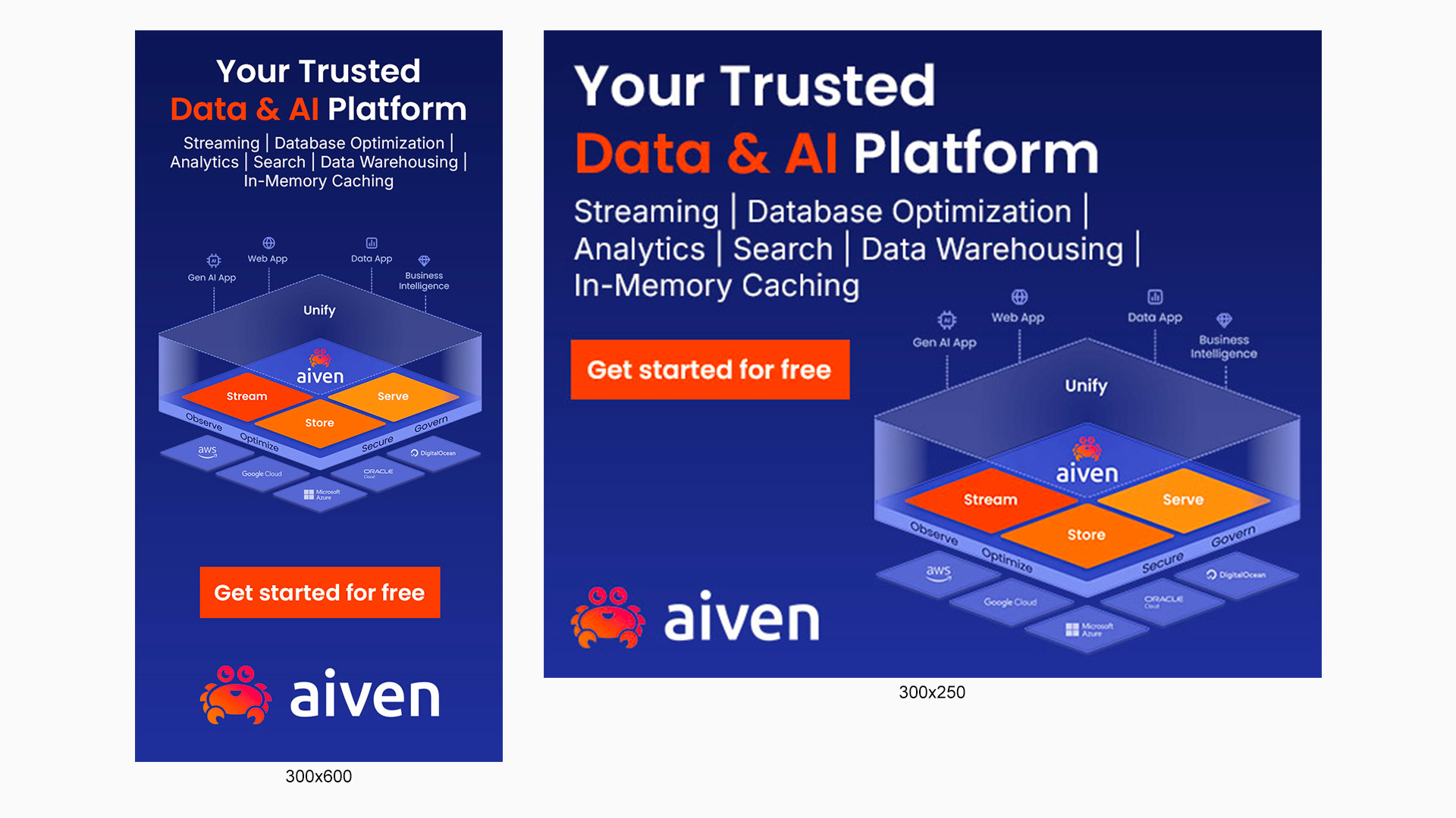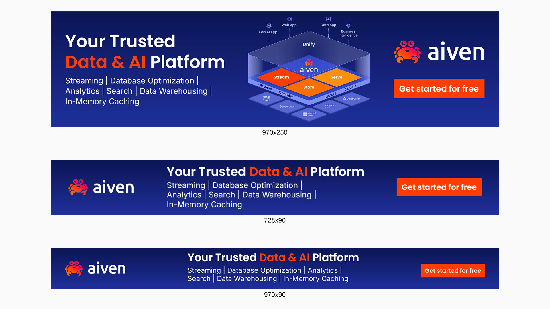 Designed a suite of ads units for Aiven, a data and AI platform company.
